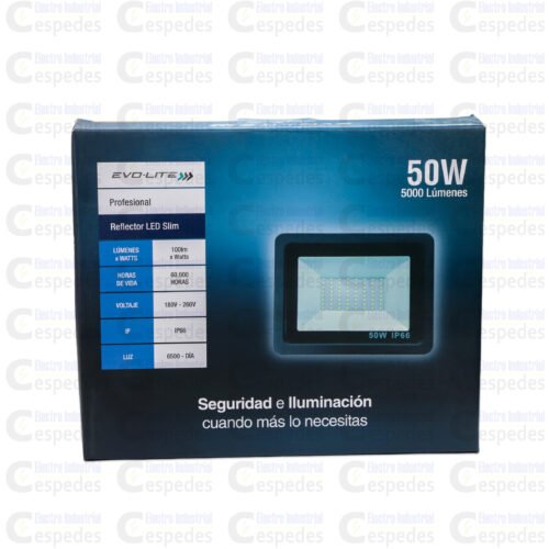 El Reflector LED EVOLAITE de 50W está diseñado para ofrecer una iluminación excepcional, con un alto flujo luminoso que garantiza claridad en cualquier ambiente.